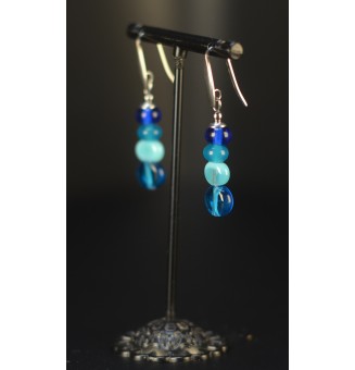 22,00 €Boucles d’oreilles dépareillées bleu en verre filé artisanal,
