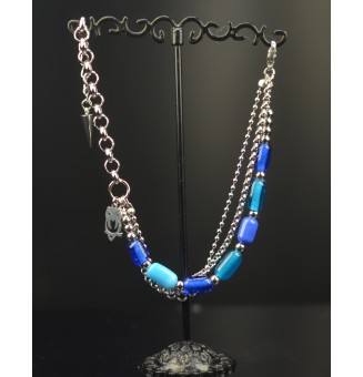 Ce modèle se distingue par sa chaîne en acier inoxydable multi-rangs, qui se superpose délicatement autour du poignet, apportant volume et style. Une perle en forme de tube multicolore vient sublimer l’ensemble, faisant de chaque bracelet une pièce unique et irremplaçable.