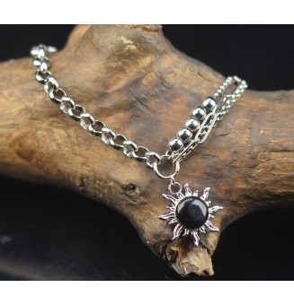 Entièrement conçu à la main dans l’atelier de l’artisane à Orange, ce bracelet se distingue par sa chaîne en acier inoxydable composée de plusieurs rangs aux maillons variés, qui se superposent harmonieusement pour un rendu à la fois graphique et élégant.