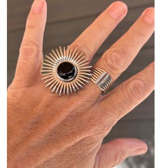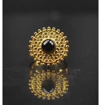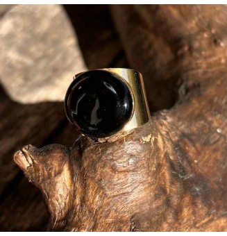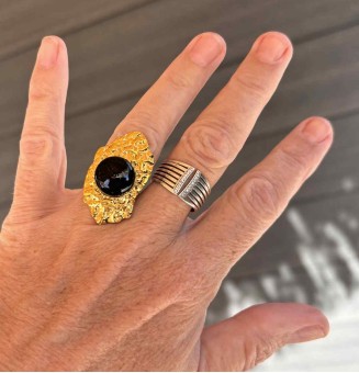 Bague en Verre Filé au Chalumeau "noir" - acier INOXYDABLE doré
