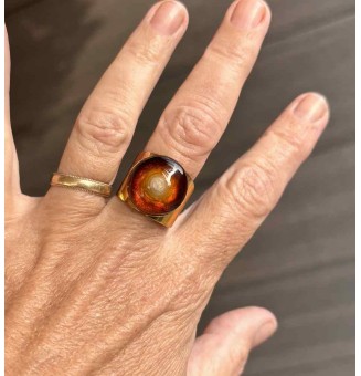 Bague en Verre Filé au Chalumeau "marron" - acier INOXYDABLE doré