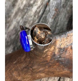 Bague en Verre Filé au Chalumeau "bleue" - acier INOXYDABLE