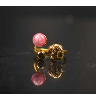 Bague en Verre Filé au Chalumeau ROSE - acier INOXYDABLE