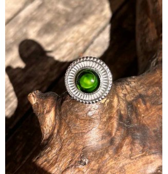Bague en Verre Filé au Chalumeau "VERT RICHE" - acier INOXYDABLE