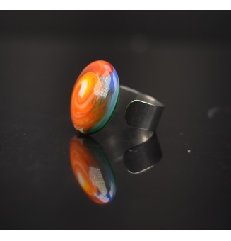 Bague en Verre Filé au Chalumeau Multicolore - acier INOXYDABLE