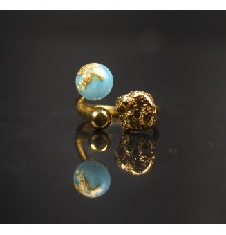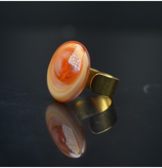 Bague en Verre Filé au Chalumeau multicolore- acier INOXYDABLE doré