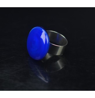 Bague en Verre Filé au Chalumeau BLEUE - acier INOXYDABLE
