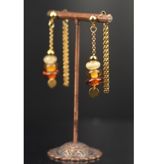 21,00 €Apportez une touche de lumière et de chaleur à votre style avec ces boucles d’oreilles en acier inoxydable doré, sublimées par trois perles de verre filé artisanal aux nuances ambrées. Chaque perle, façonnée à la main au chalumeau dans l’atelier Liloo Créations à Orange, révèle un dégradé chaleureux et lumineux, rendant chaque paire absolument unique.