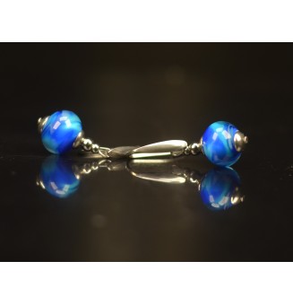 20,00 €Élégantes et lumineuses, ces boucles d’oreilles en verre filé au chalumeau dévoilent un superbe bleu mélangeant 2 tons de bleus.