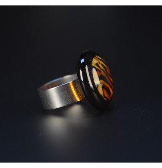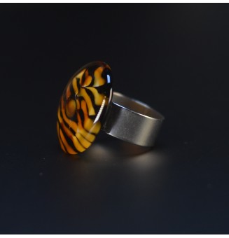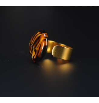 Bague en Verre Filé au Chalumeau "dégradé ambré - acier INOXYDABLE doré