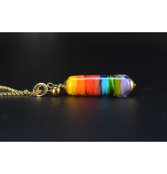 27,00 €Collier en acier inoxydable doré avec grosse perle ovale en verre filé multicolore (1,4x 3,8 cm).