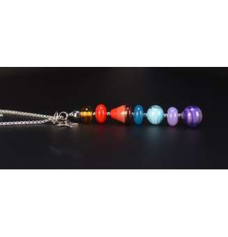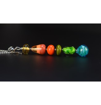 27,00 €Collier long 60 cm en acier inoxydable avec pendentif en perles de verre filé artisanales.