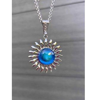 Collier Soleil bleu vert en...