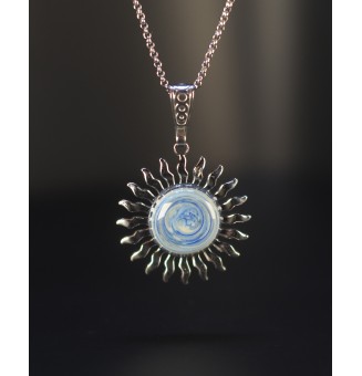 25,00 €Collier Soleil 3,5 cm avec cabochon en verre filé bleu deux tons, façonné à la main en France. Bijou artisanal unique sur chaîne inoxydable réglable.