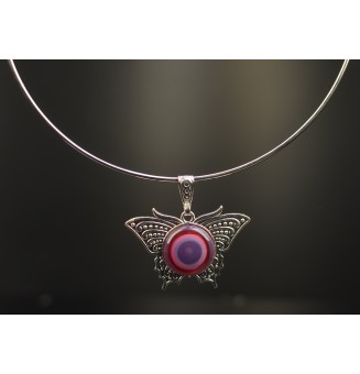 Ce collier papillon en verre est bien plus qu’un simple accessoire : c’est une œuvre d’art à porter, façonnée avec passion par une artisane d’art spécialisée dans le verre filé au chalumeau.