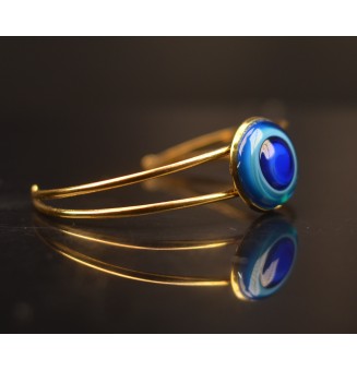 22,00 €Bracelet rigide doré en acier inoxydable, orné d’un cabochon en verre artisanal façonné à la main dans l’atelier Liloo Créations. Réglable, il s’adapte aux poignets de 15 à 19 cm. Une création unique, élégante et lumineuse.