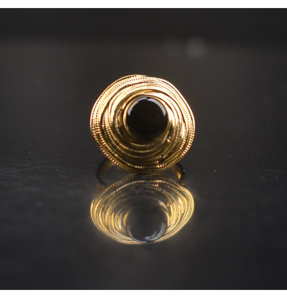 Bague en Verre Filé au Chalumeau "noir" - acier INOXYDABLE doré