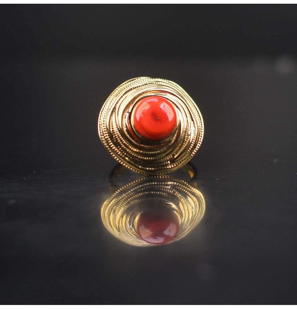 Bague en Verre Filé au Chalumeau "rouge" - acier INOXYDABLE doré