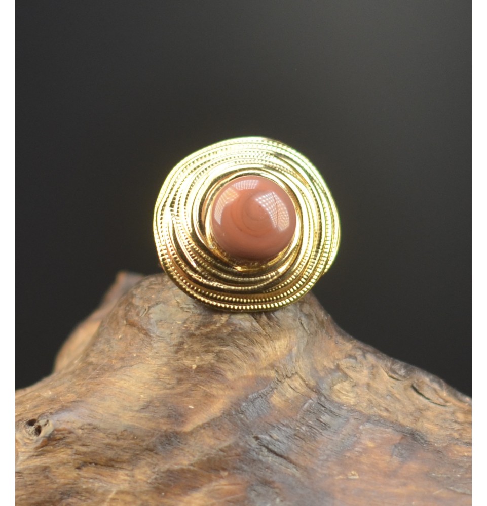 Bague en Verre Filé au Chalumeau "marron" - acier INOXYDABLE doré