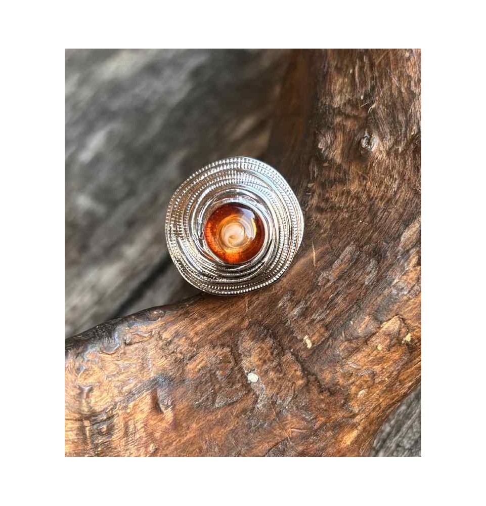 Bague en Verre Filé au Chalumeau "Dégradé ambré" - acier INOXYDABLE