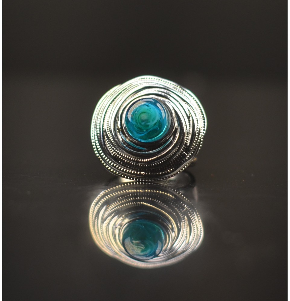 Bague en Verre Filé au Chalumeau "BLEU VERT" - acier INOXYDABLE