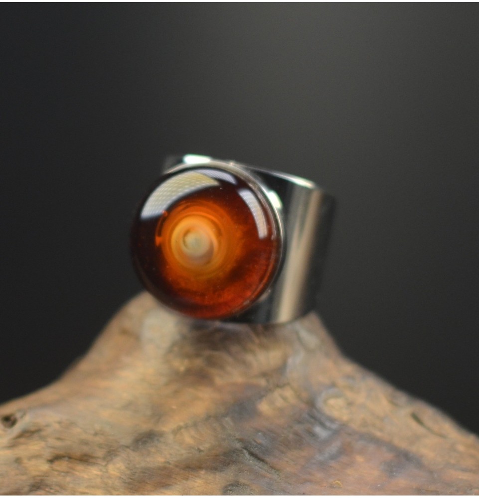 Bague Large ACIER INOXYADLE avec Cabochon en Verre Filé – Modèle Unique