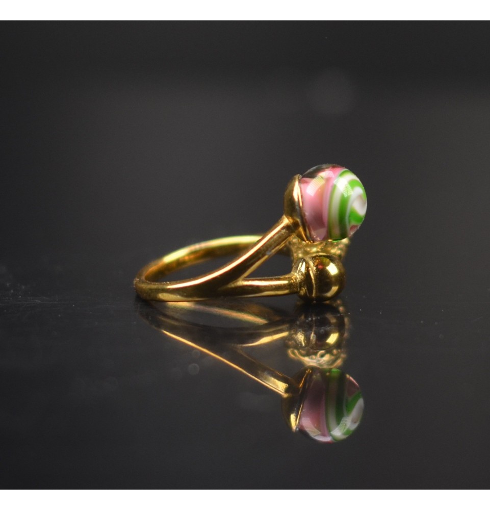 Bague réglable acier inoxydable doré avec perle de verre – Nouveau modèle - Rose / VERT