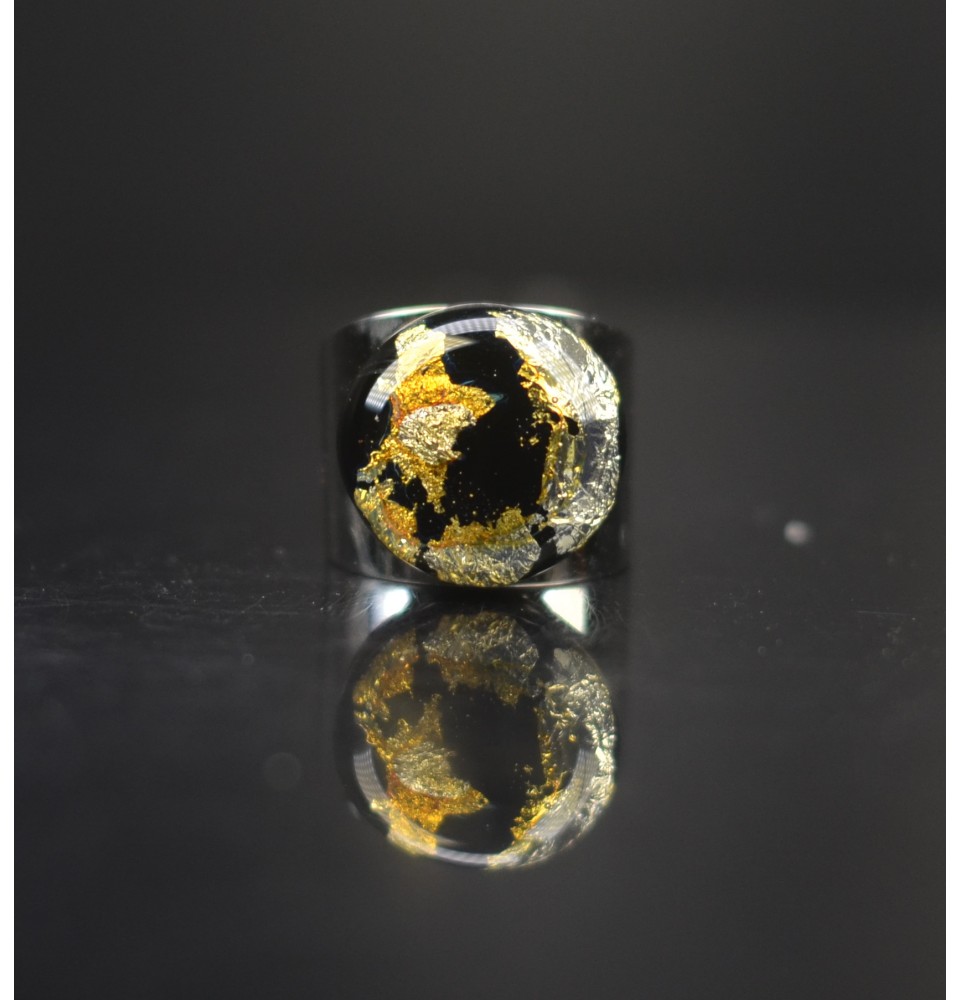 Bague Large avec Cabochon en Verre Filé – Modèle Unique - noir et or