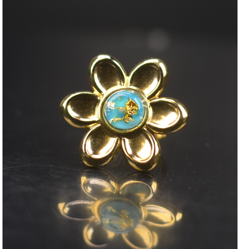Bague fleur dorée – Cabochon en verre turquoise et feuille d'or