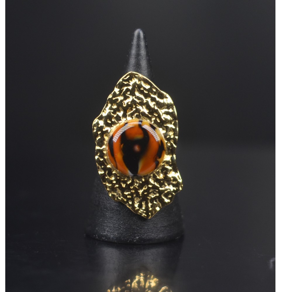 Bague réglable en acier inoxydable martelé, ornée d’un cabochon en verre filé à la main. Une création artisanale signée Liloo Créations, moderne, colorée et unique — parfaite pour sublimer toutes vos tenues.