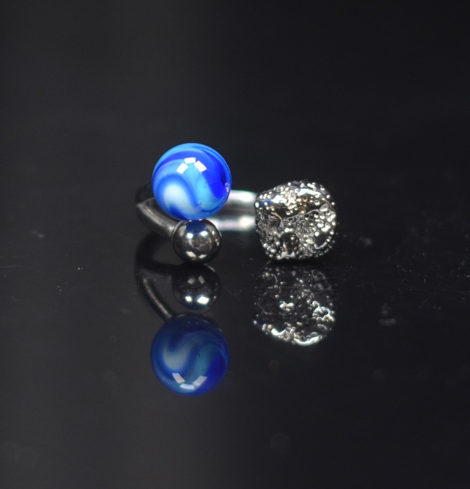 Bague réglable acier inoxydable avec perle de verre – Nouveau modèle - Divers bleus
