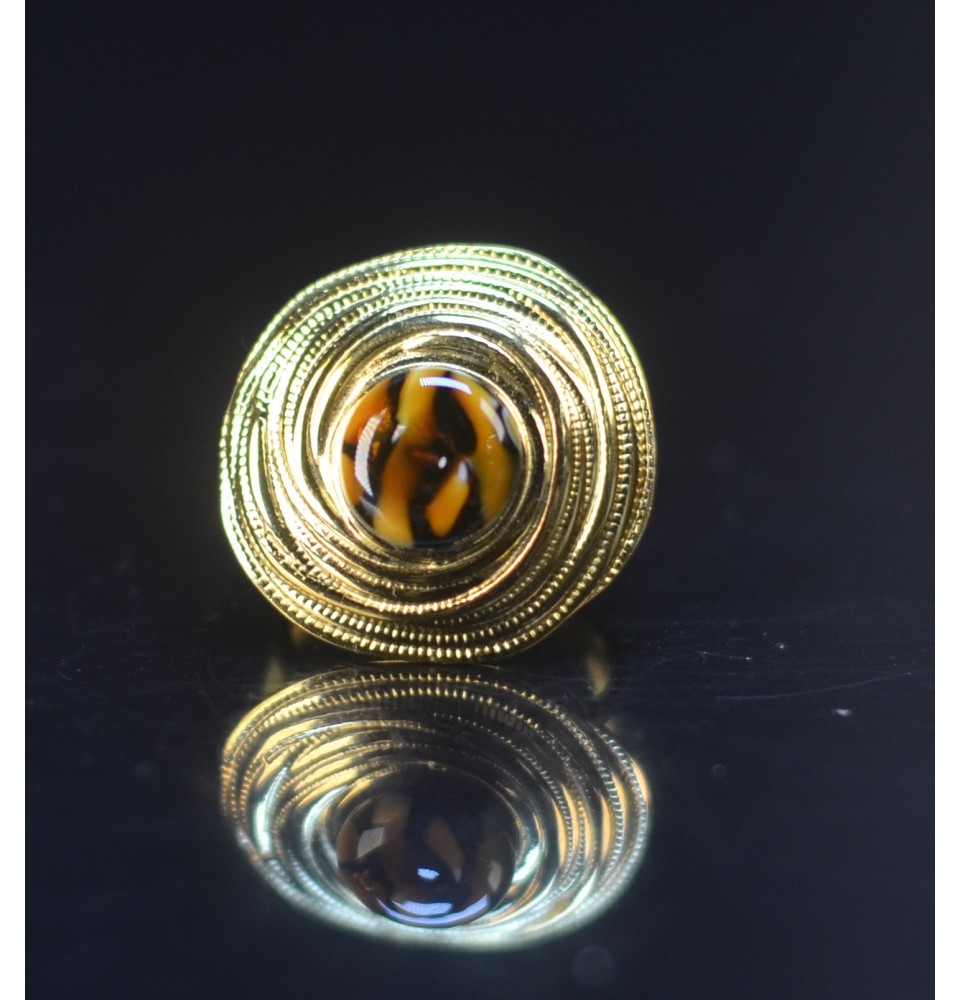 Bague en Verre Filé au Chalumeau "léopard" - acier INOXYDABLE doré
