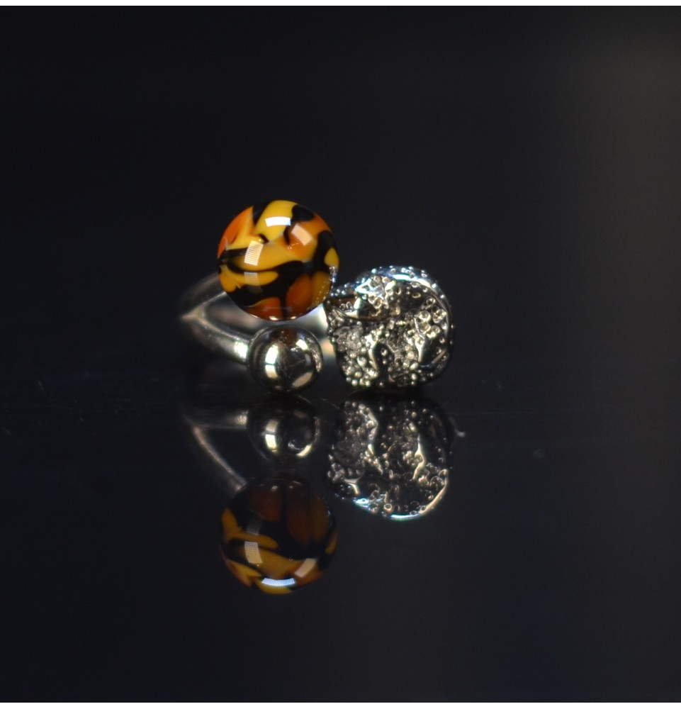 Bague réglable avec perle de verre – Nouveau modèle - motif Léopardf
