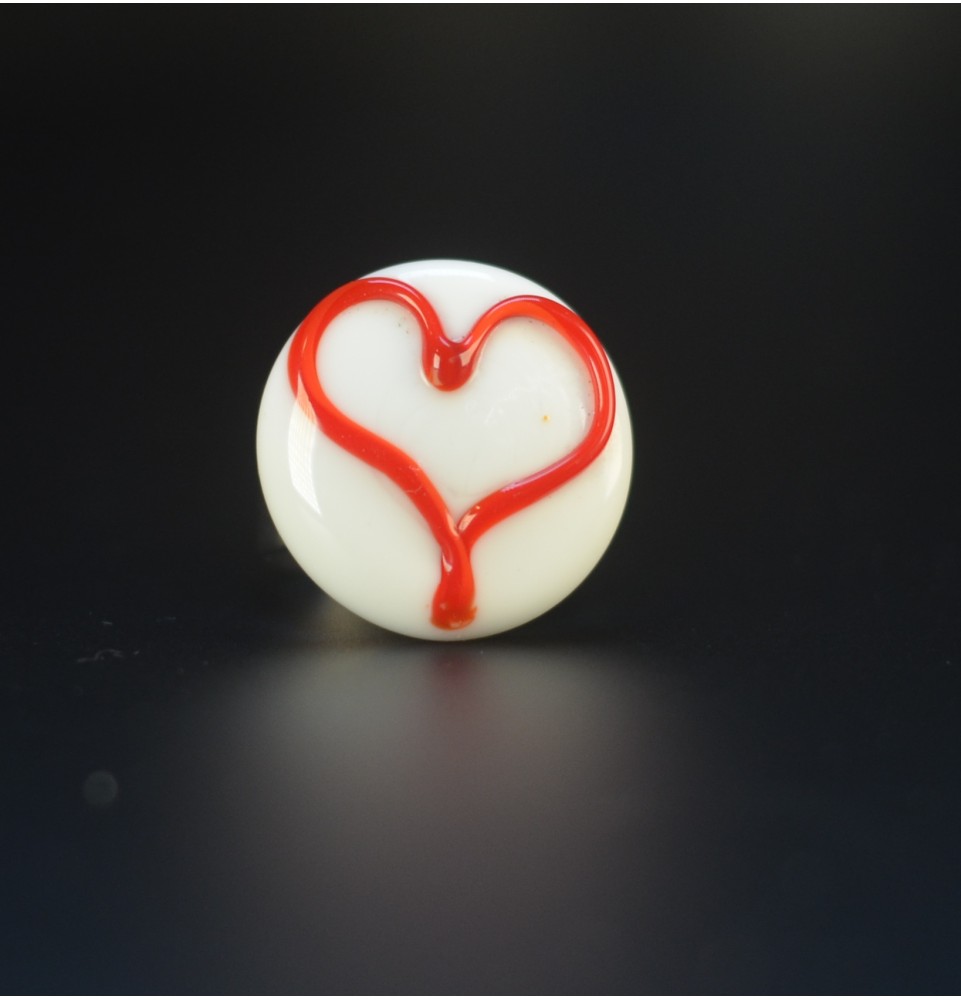 Bague réglable en Verre Filé au Chalumeau COEUR "blanc rouge" - acier INOXYDABLE