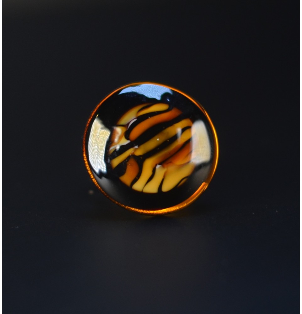 Son cabochon en verre filé au chalumeau, au motif léopard, apporte une touche sauvage, graphique et résolument tendance à votre tenue.