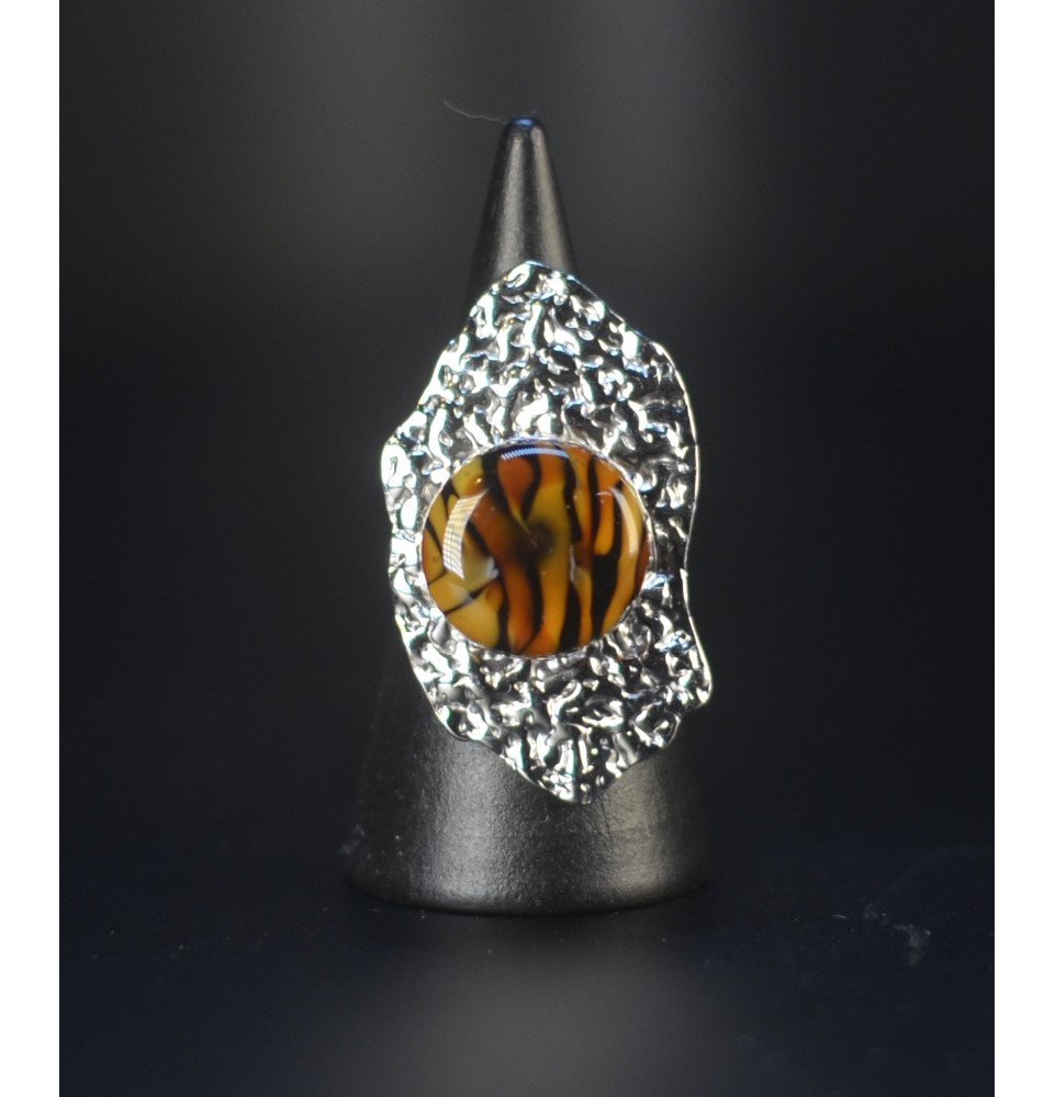 Bague réglable léopard, femme en acier inoxydable martelé avec cabochon en verre filé – bijou artisanal fait main Liloo Créations