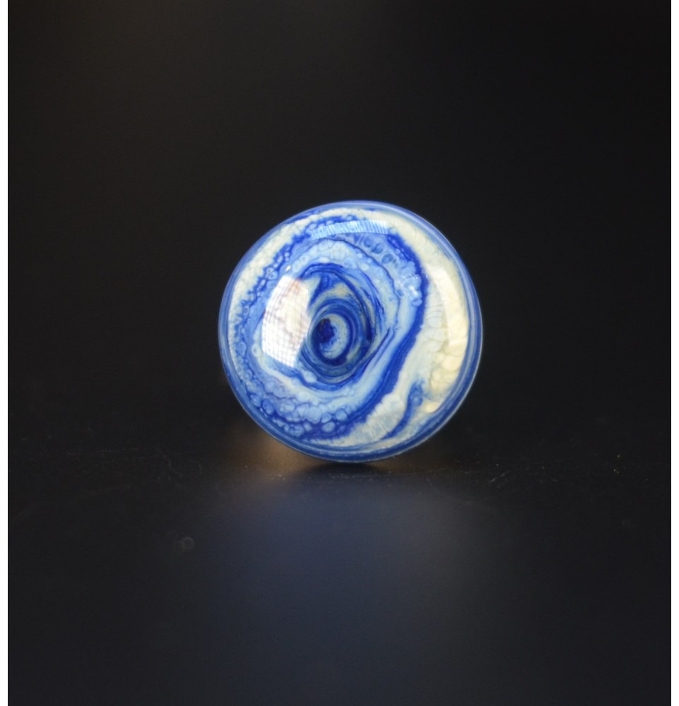 Son cabochon en verre filé au chalumeau, bleu tye and die, apporte une touche sauvage, graphique et résolument tendance à votre tenue.