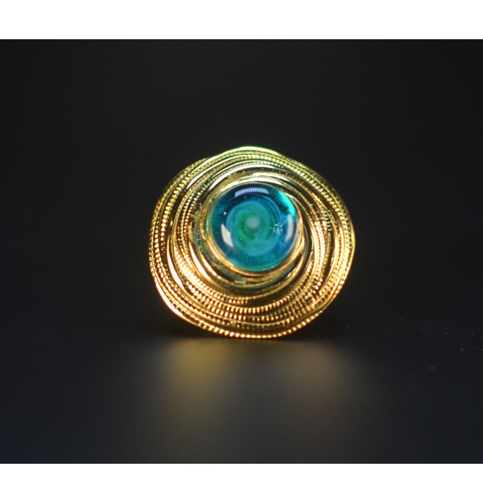 Bague en Verre Filé au Chalumeau "BLEU vert" - acier INOXYDABLE doré