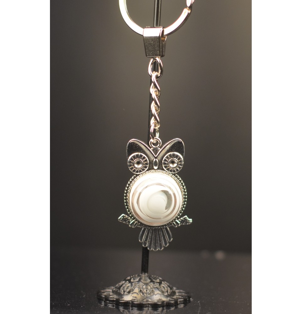 Bijou de sac / Porte-clés Hibou avec cabochon en verre – Création artisanale Liloo Créations