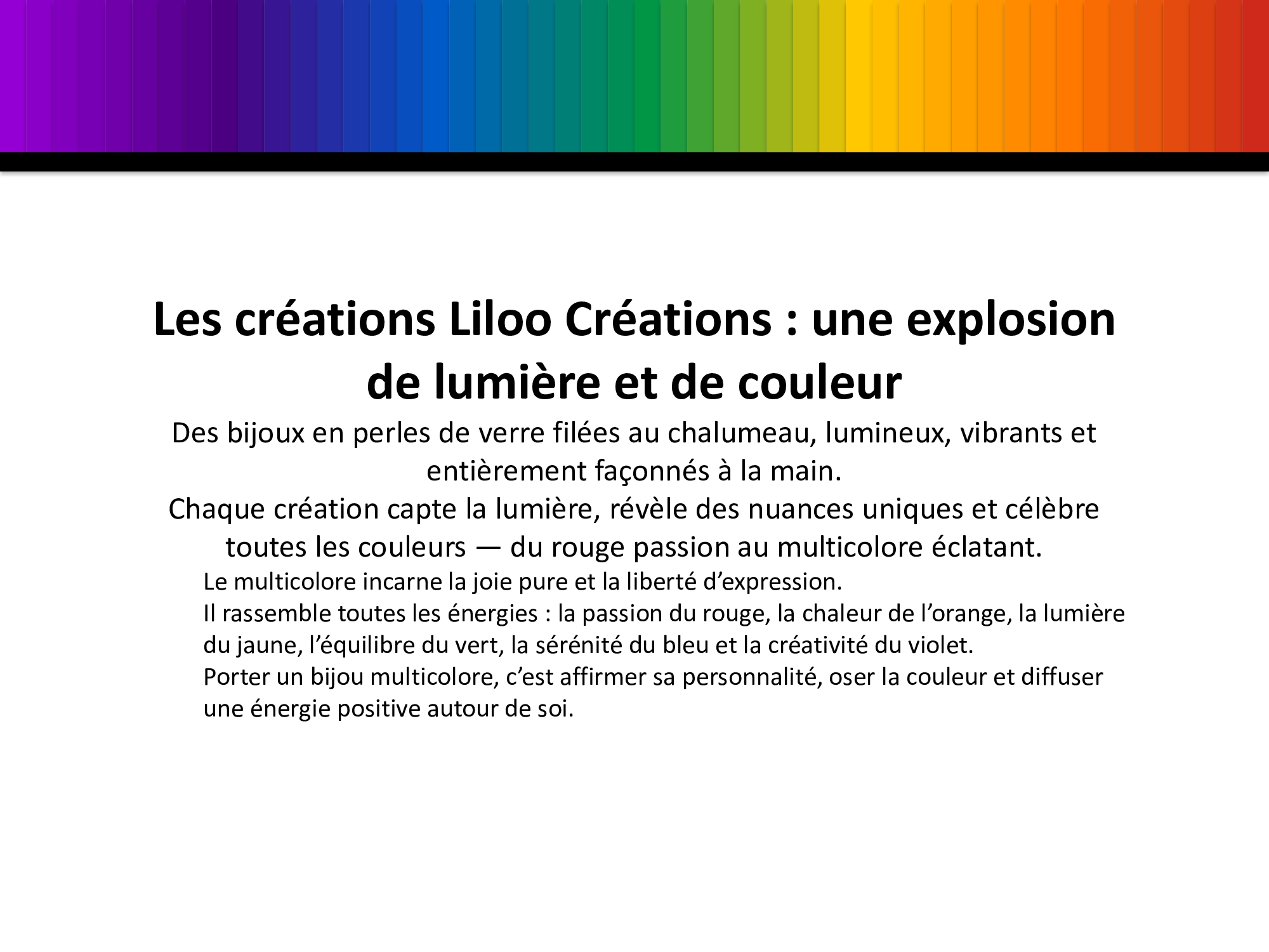 Les créations Liloo : une explosion de lumière et de couleur Dans: NEWS Le: mercredi, février 11, 2026 Commentaire: 0 Hit: 9 Les créations Liloo : une explosion de lumière et de couleur J'aime Twitter Tags: couleurs bijoux colorés Dans la même catégorie Partenariat sportif VOEUX 2026 Liloo Créations, en savoir plus ! Mon Calendrier Estival 2025 : Retrouvez-moi sur les Marchés Nocturnes ! Tags associés Les créations Liloo : une explosion de lumière et de couleur Commentaires Laissez votre commentaire Nom Email Commentaire Captcha Soumettre