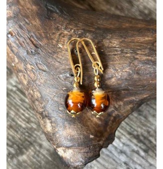Ces boucles d’oreilles en cabochon de verre filé s’accordent avec toutes vos tenues d’automne et d’hiver. Leur couleur ambrée apporte une touche de chaleur et de douceur à votre style, qu’il soit décontracté ou habillé.