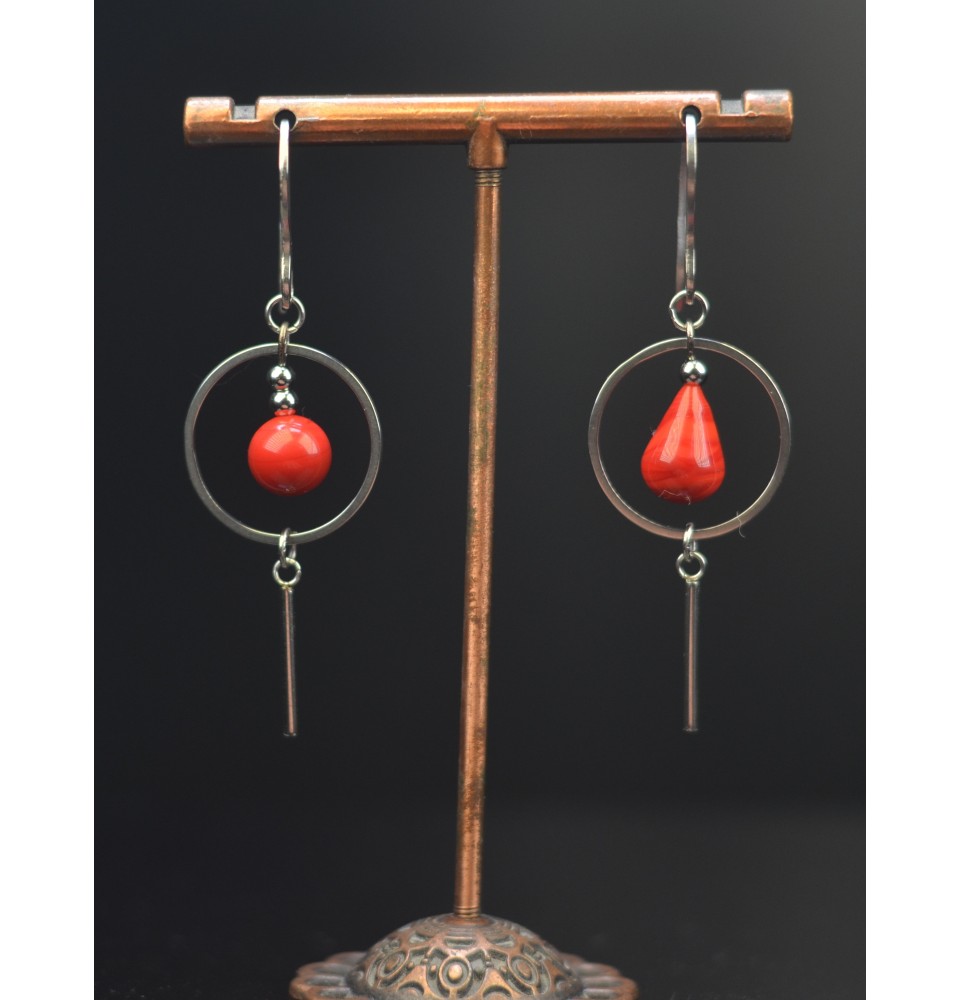 - Design Unique : Chaque boucle est composée de perles rouge, réalisée à la main par notre artisane. Chaque perle est unique, reflétant le soin et la passion de la créatrice.