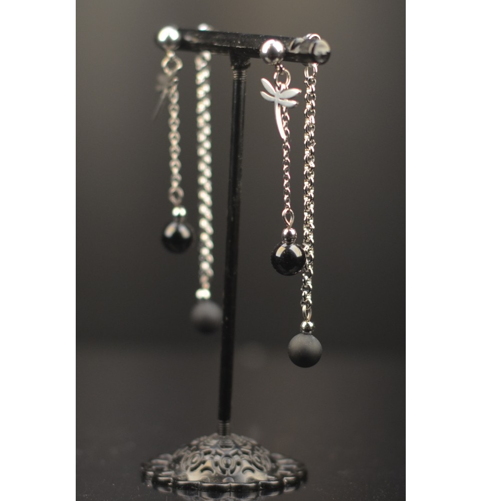 Boucles d'Oreilles DOUBLE PENDANTS en Perles de Verre NOIR – Élégance et Modernité