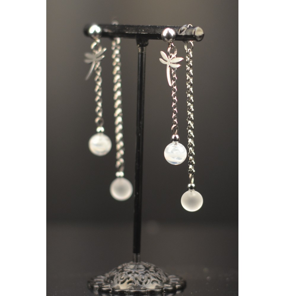 Boucles d'Oreilles DOUBLE PENDANTS en Perles de Verre BLANC – Élégance et Modernité