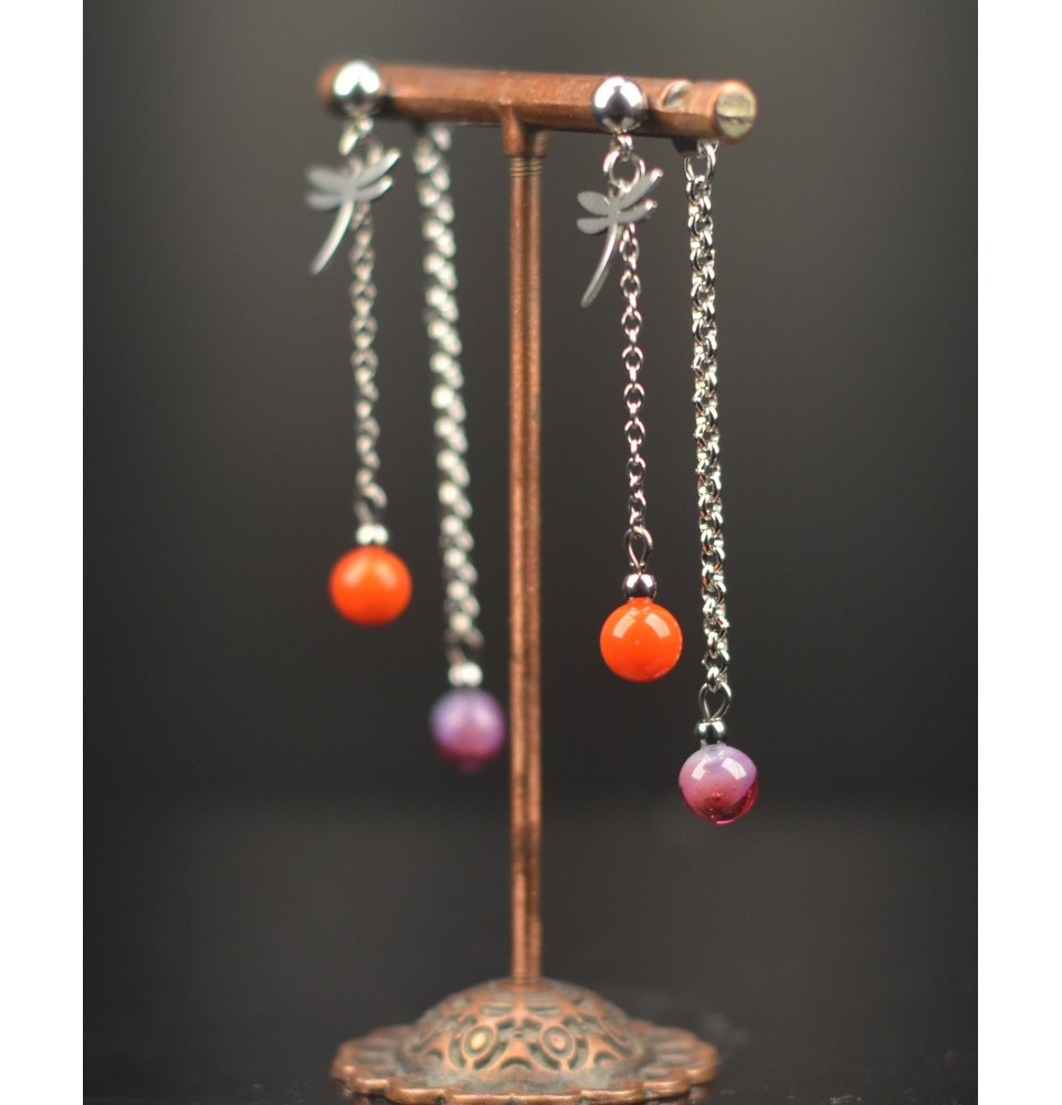 Boucles d'Oreilles en Perles de Verre orange et rose – Élégance et Modernité