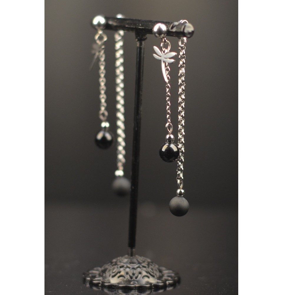 Boucles d'Oreilles DOUBLE PENDANTS en Perles de Verre NOIR – Élégance et Modernité