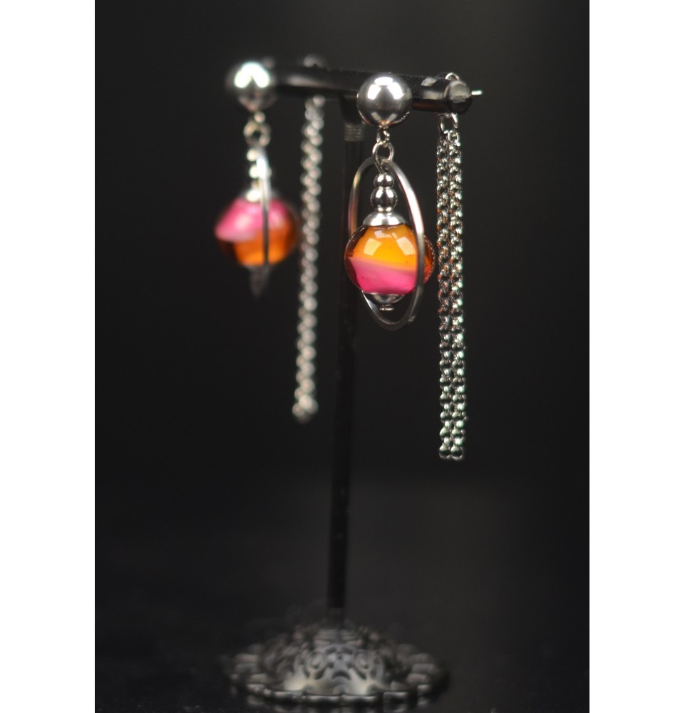 Boucles d’oreilles “rose et caramel" en verre filé à double pendants – Élégance artisanale - Acier inoxydable