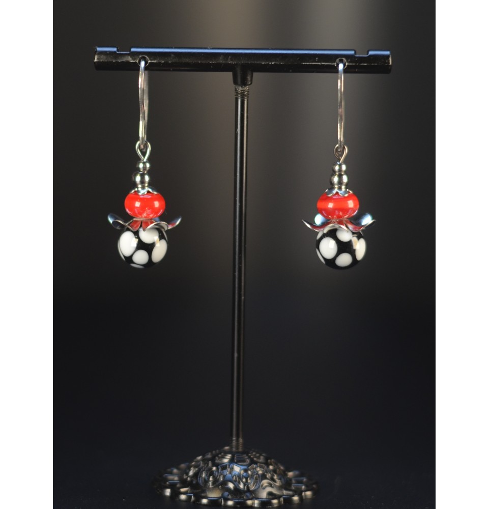 Boucles d’Oreilles GIRLY en Verre Filé - par Liloo Créations - blanc noir rouge