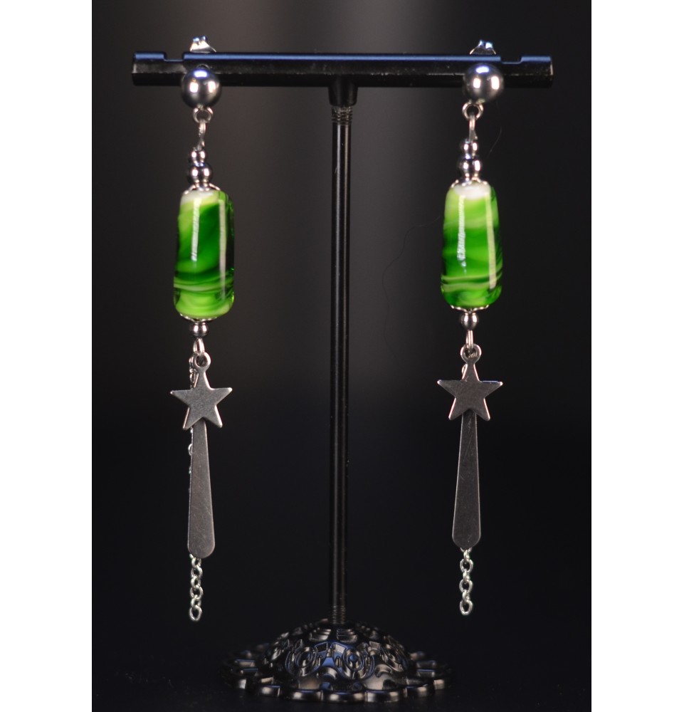 Boucles d’Oreilles Vert rosetta en perles de verre
