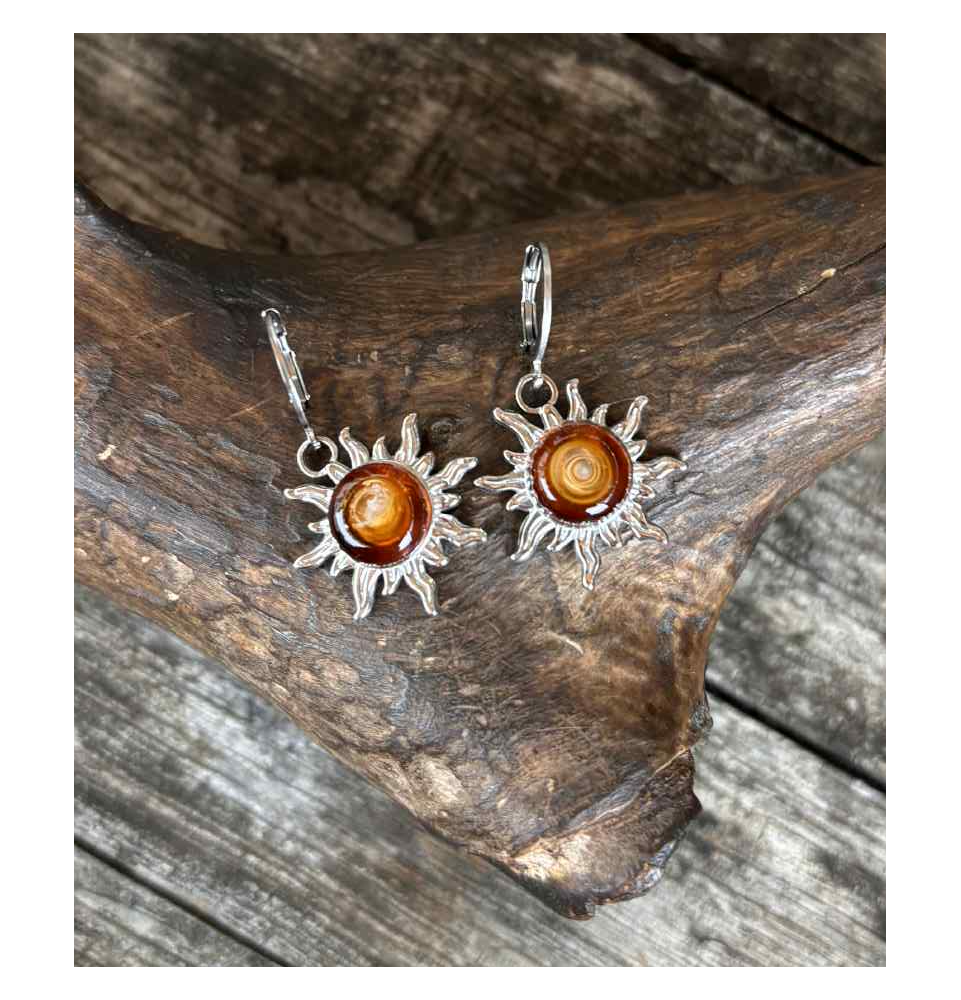Boucles d’oreilles “Soleil ambré” – cabochon de verre filé à la flamme, acier inoxydable